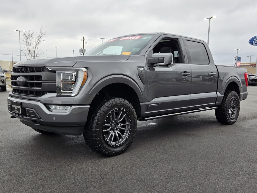 Ford Co-Pilot360 Assist 2.0. Lariat Sport Appearance Package: Box Side Decals; Chrome Single-Tip Exhaust; 275/65R18 BSW A/T Tires; Accent-Color Angular Step Bars; Dark Two-Bar and One Minor Bar Style Grille; Body-Color Front and Rear Bumpers. Bed Utility Package: BoxLink; LED Box Lighting; Tailgate Step with Tailgate Work Surface; Power Tailgate. Equipment Group 502A High: Rain-Sensing Wipers; Leather-Trimmed Bucket Seats; Power Tilt/telescoping Steering Column with Memory; 2nd Row Heated Seats; Power Glass Sideview Mirror with Chrome Skull Caps; Universal Garage Door Opener; Heated Steering Wheel; Wireless Charging Pad; LED Projector with Dynamic Bending Headlamps. Trailer Tow Package: Integrated Trailer Brake Controller; Class IV Trailer Hitch Receiver; Pro Trailer Backup Assist. Lariat Chrome Appearance Package: Chrome Single-Tip Exhaust; Chrome Door and Tailgate Handles with Body-Color Bezel; 275/65R18 BSW A/T Tires; 18 Chrome-Like PVD Wheels; Chrome 2-Bar Grille with 4 Minor Bars; Chrome Skull Caps on Exterior Mirrors. Twin Panel Moonroof. Power-Deployable Running Boards. 360 Degree Camera. B&O Unleashed Sound System by Bang & Olufsen Radio. Leather-Trimmed Bucket Seats. Electronic Locking with 3.73 Axle Ratio. Integrated Trailer Brake Controller. Partitioned Lockable Fold-Flat Storage. Interior Work Surface. Wireless Charging Pad. BoxLink. **Equipment listed is based on original vehicle build and subject to change. Please confirm the accuracy of the included equipment by calling the dealer prior to purchase.**