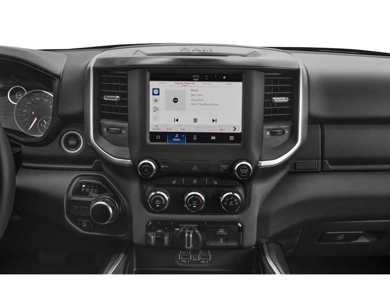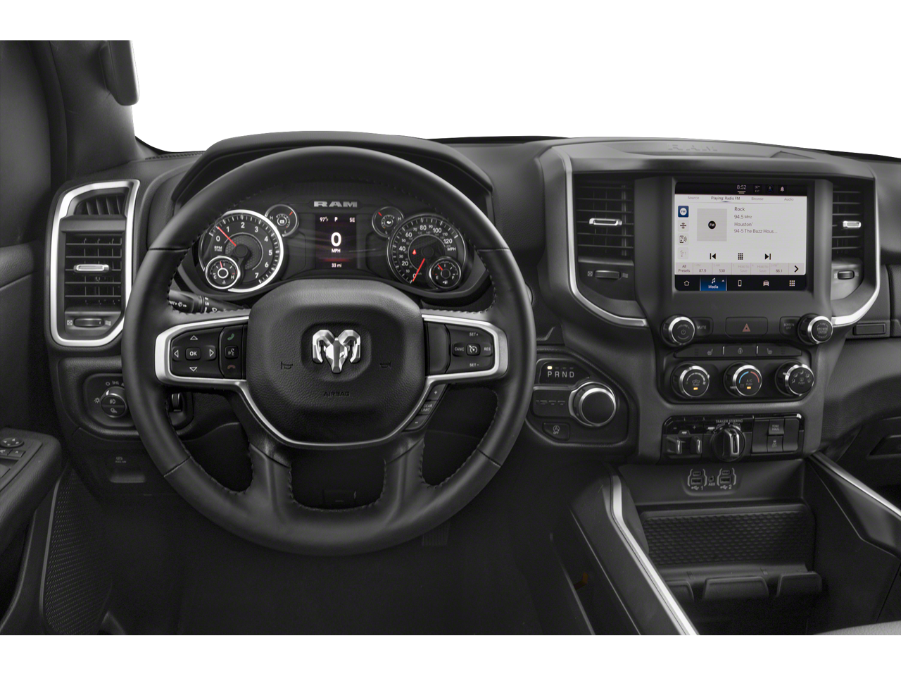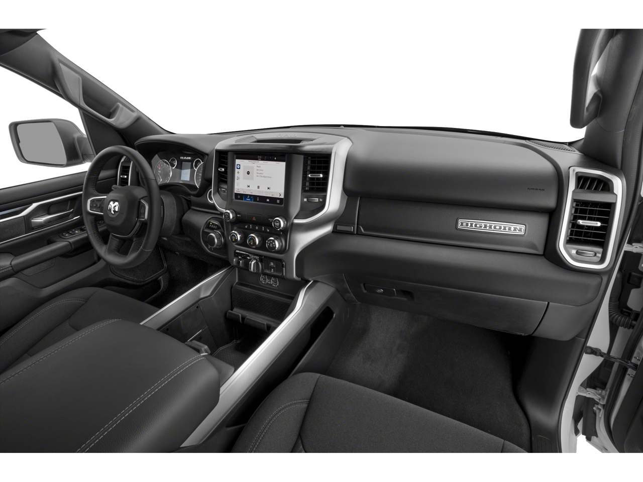 Big Horn Level B Equipment Group: Rear Window Defroster; ParkSense Front/rear Park Assist with Stop; Rear View Auto Dim Mirror; Power Adjustable Pedals; Rear Power Sliding Window; Rear Dome with On/off Switch Lamp; Front Fog Lamps; Glove Box Lamp; Media Hub with 2 Charge Only USBs; Exterior Mirrors with Heating Element; Power 8-Way Driver Seat; Auto Dim Exterior Driver Mirror; Heated Front Seats; Heated Steering Wheel; Class IV Receiver Hitch; Security Alarm; Black Premium Power Mirrors; Big Horn Instrument Panel Badge; Remote Start System; SiriusXM Satellite Radio; 400W Inverter; 9 Amplified Speakers with Subwoofer; Uconnect 5 Navigation with 12.0" Display Radio; Exterior Mirrors with Supplemental Signals; Exterior Mirrors Courtesy Lamps; Air Conditioning ATC with Dual Zone Control; 115V Auxiliary Power Outlet; Cluster 7.0" TFT Color Display; Universal Garage Door Opener; Power-Folding Mirrors; 2nd Row in Floor Storage Bins; Convex Wide-Angle Exterior Mirror Insert; Sun Visors with Illuminated Vanity Mirrors; LED Footwell Lighting; Power 2-Way Driver Lumbar Adjust. Quick Order Package 23Z Big Horn: Big Horn Badge. 9 Amplified Speakers with Subwoofer. MOPAR Black Tubular Side Steps. Deluxe Cloth Bucket Seats. E-Locker Rear Axle. ParkSense Front/rear Park Assist with Stop. Trailer Brake Control. Billet Silver Metallic CC. Billet Silver Metallic CC. 115V Auxiliary Power Outlet. Remote Start System. Rear Wheelhouse Liners. MOPAR Front and Rear Rubber Floor Mats. **Equipment listed is based on original vehicle build and subject to change. Please confirm the accuracy of the included equipment by calling the dealer prior to purchase.**